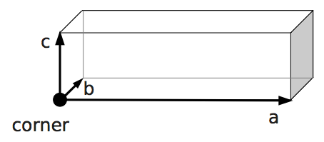 \(V_0\), the current volume of the object is \(V\).output_vtk_rhomboid(corner, a, b, c, outFile.vtk)