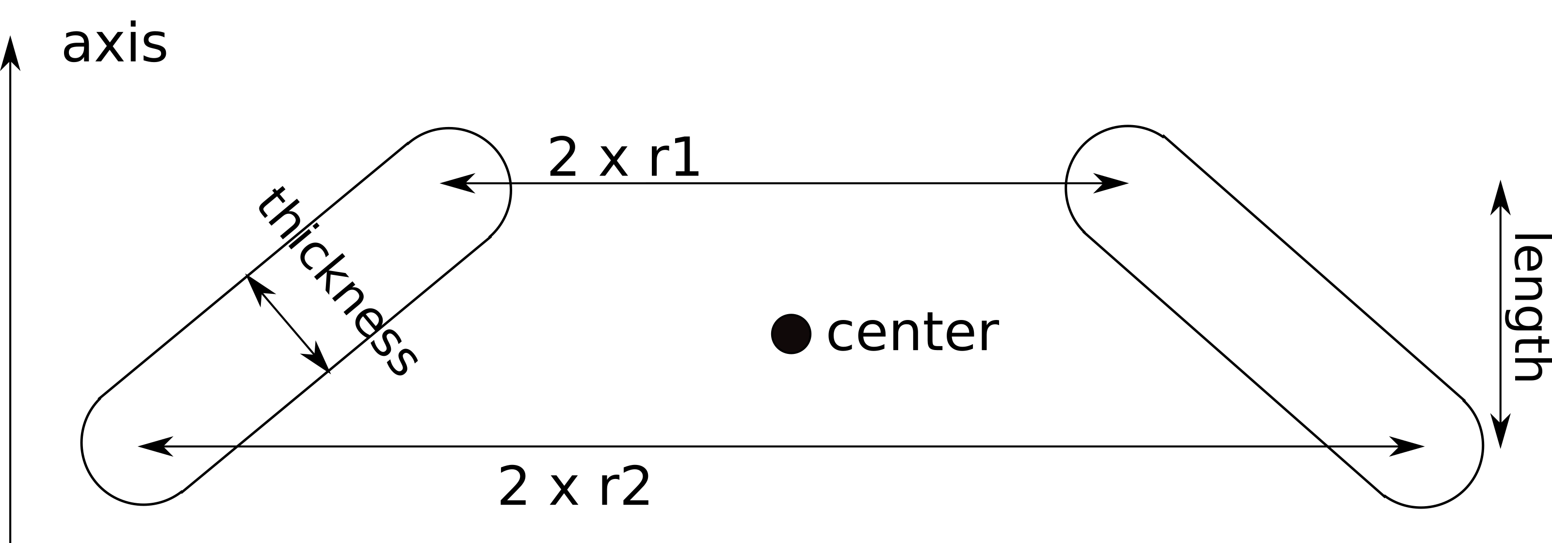 are described in the shape’s class espressomd.shapes.HollowConicalFrustum.
